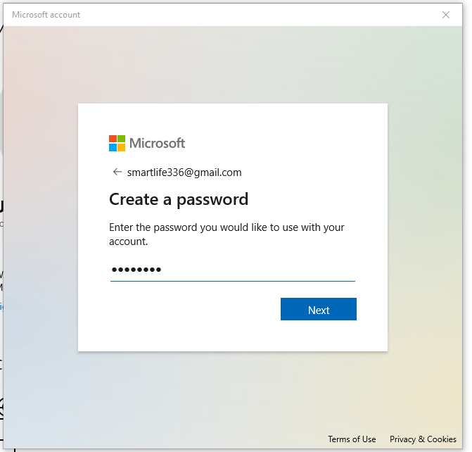 - next step is you must create strong password. After you created password click next button for next step.